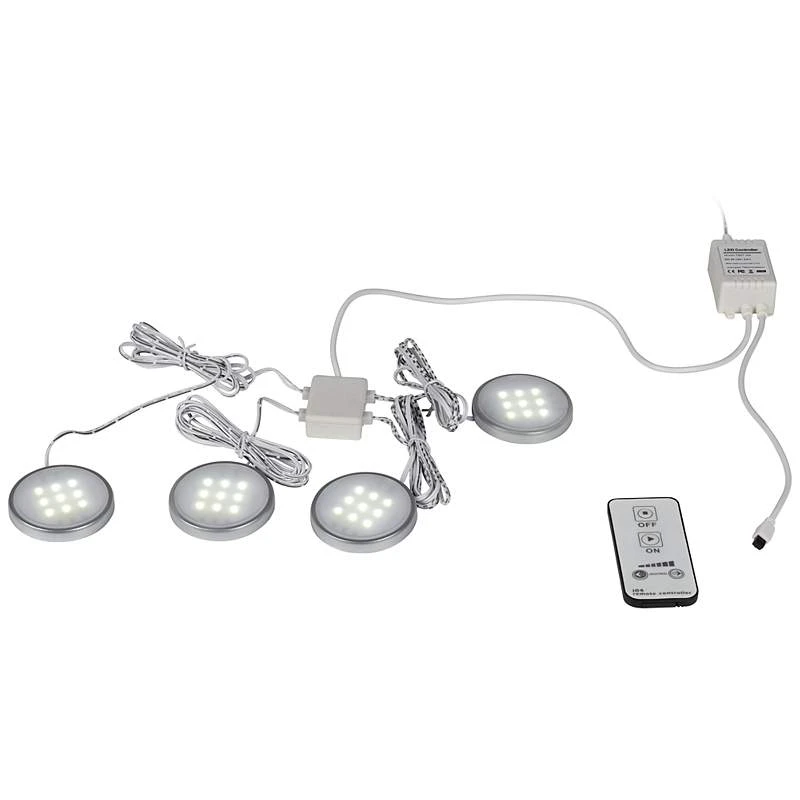 4-Light LED Puck Light Kit With Remote Control