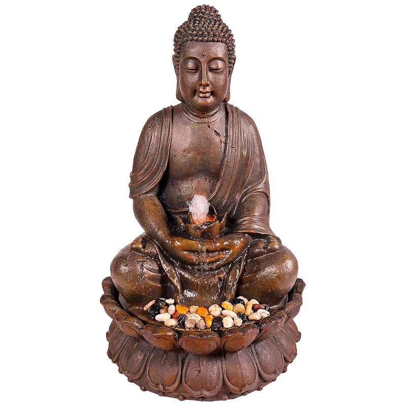Alpine Illuminated Buddha Outdoor Fountain With LED Light
