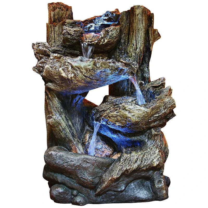 Alpine Tiered Log LED Indoor – Outdoor 14″ High Tabletop Fountain