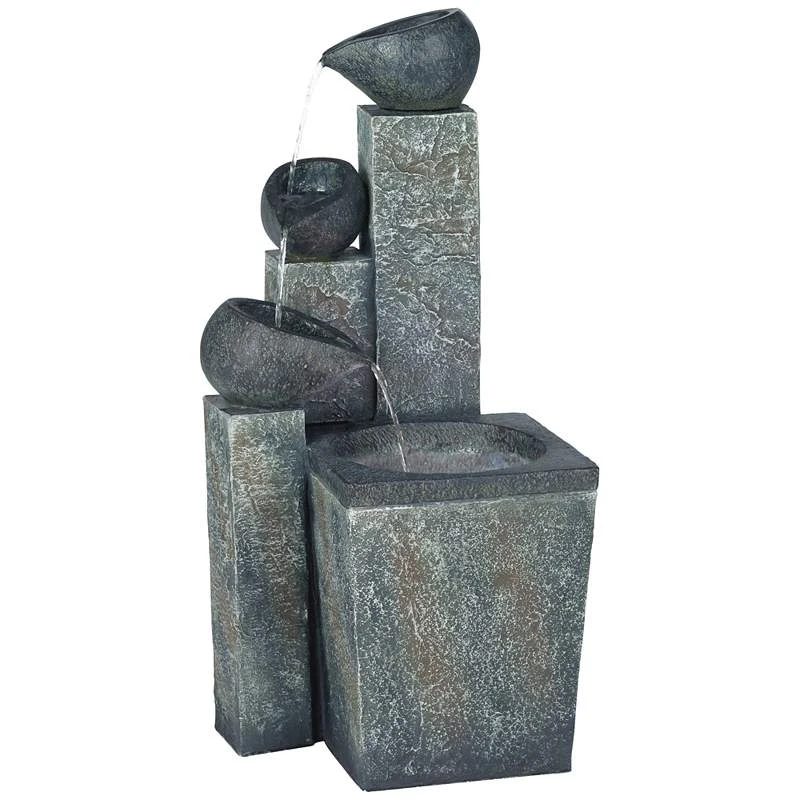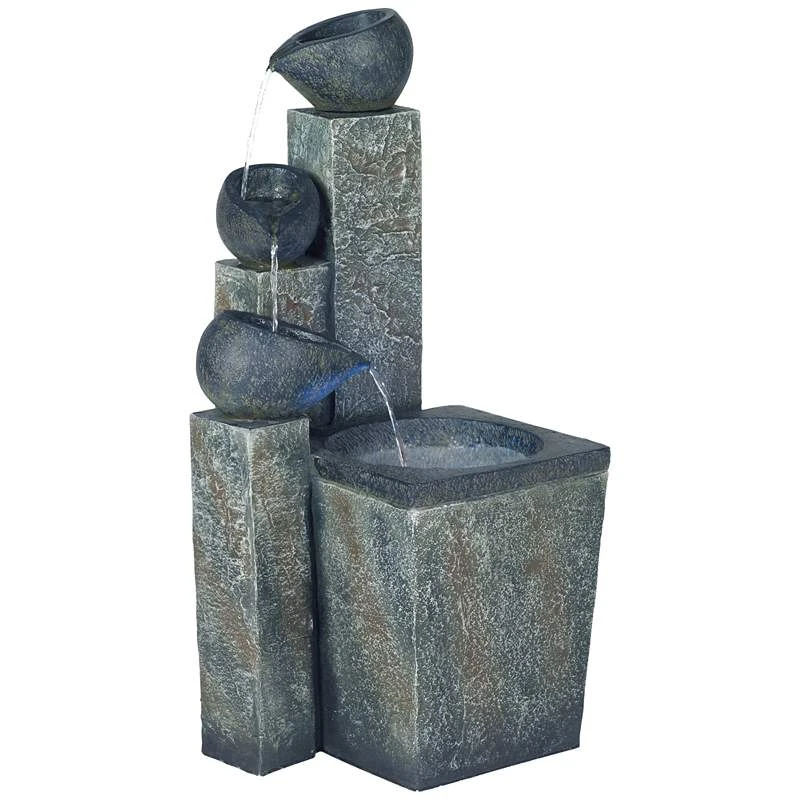 Louvre 44″ High Gray 3-Tier LED Outdoor Floor Water Fountain