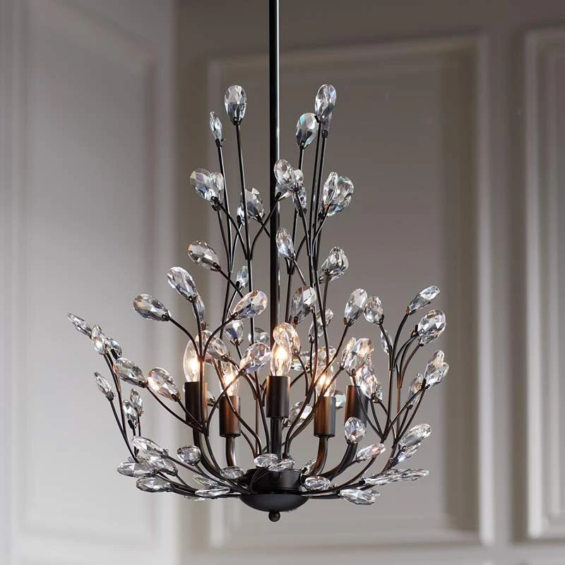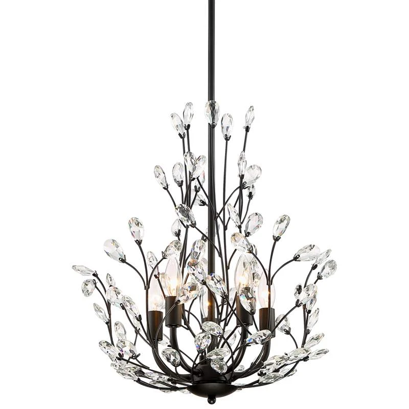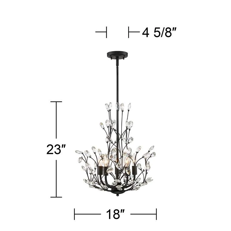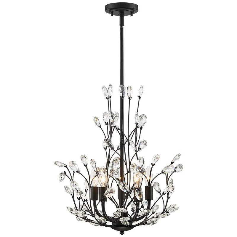 Aurine 18″ Wide Matte Black And Crystal Floral 5-Light Chandelier