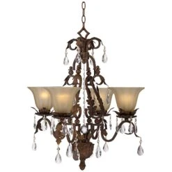 Iron Leaf 4-Light Roman Bronze And Crystal Chandelier
