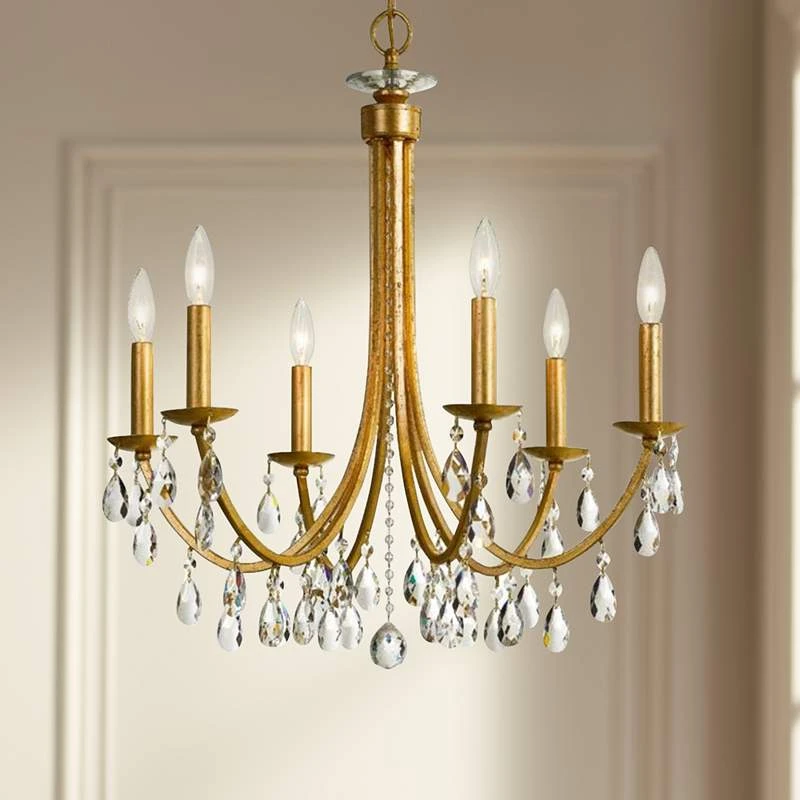 Crystorama Bridgehampton 26″W Antique Gold 6-Light Crystal Chandelier