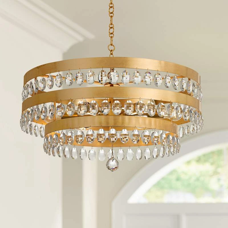 Crystorama Perla 26″W Antique Gold And Crystal Chandelier