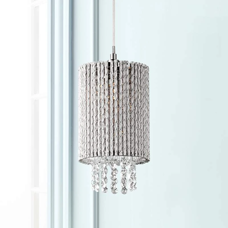 ET2 Spiral Collection 6″ Wide Modern Chrome And Crystal Mini Pendant