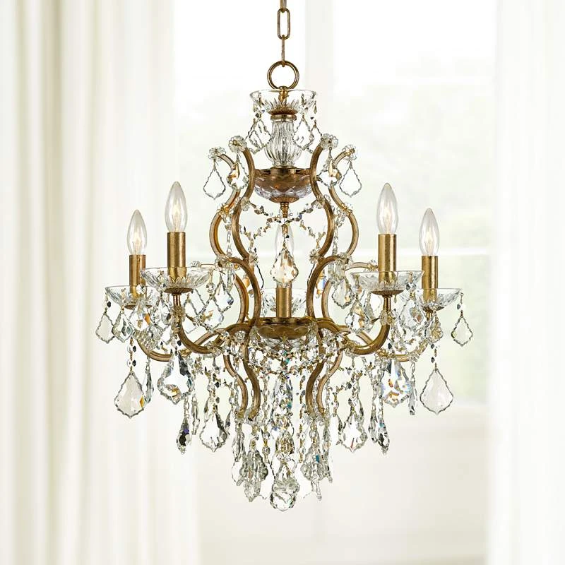 Filmore 23″ Wide Antique Gold 6-Light Traditional Crystal Chandelier