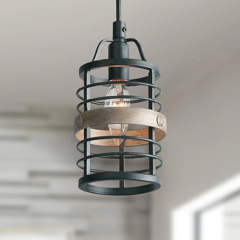 Fordan 4 3/4″ Wide Dark Gray Wood Mini Pendant