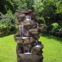 Riviera 56″ Sandstone 3-Tier Bubbler Fountain With LED Light