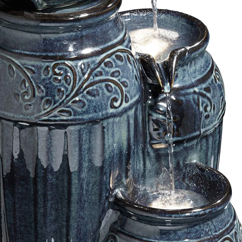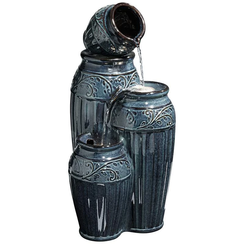Four Blue Urns 27″ High Ceramic LED Cascading Floor Fountain