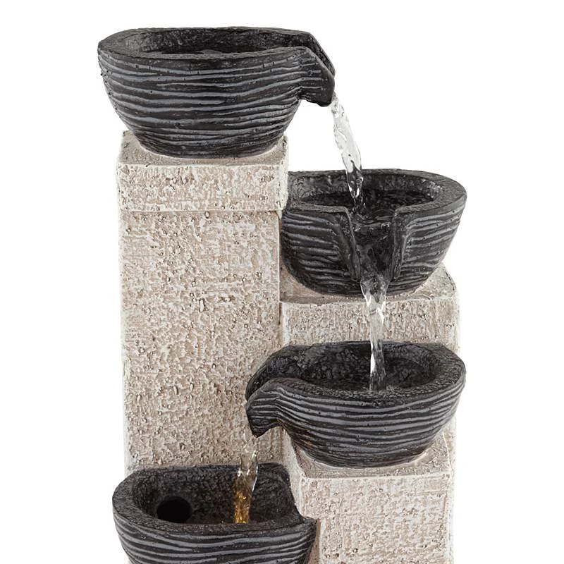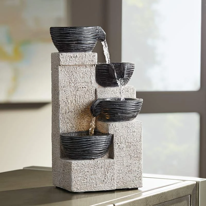 Four Cup 11″ High Gray LED Cascading Water Fountain