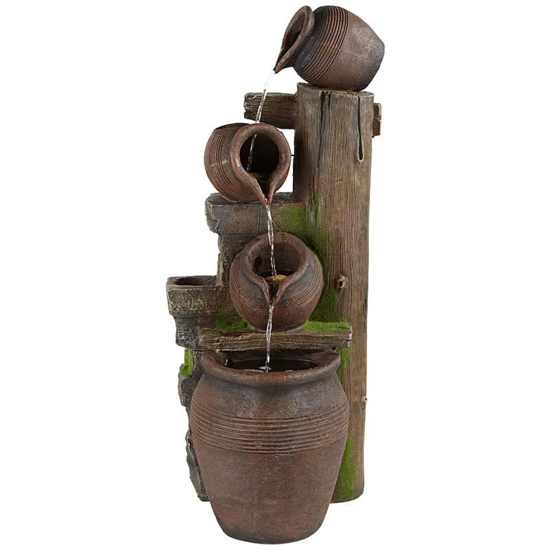 Four Pot 39 1/4″ High Terracotta Finish LED Cascading Outdoor Fountain
