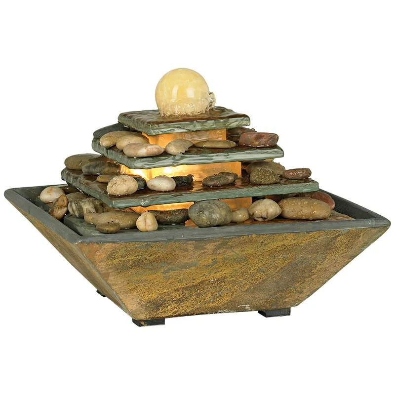 Four Tiers 9″ High Slate Stone Feng Shui Table Fountain