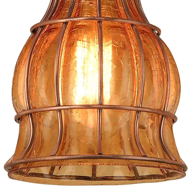 Hi-Lite Aubrey 5 1/4″ Wide Weathered Copper Dark Glass Mini Pendant