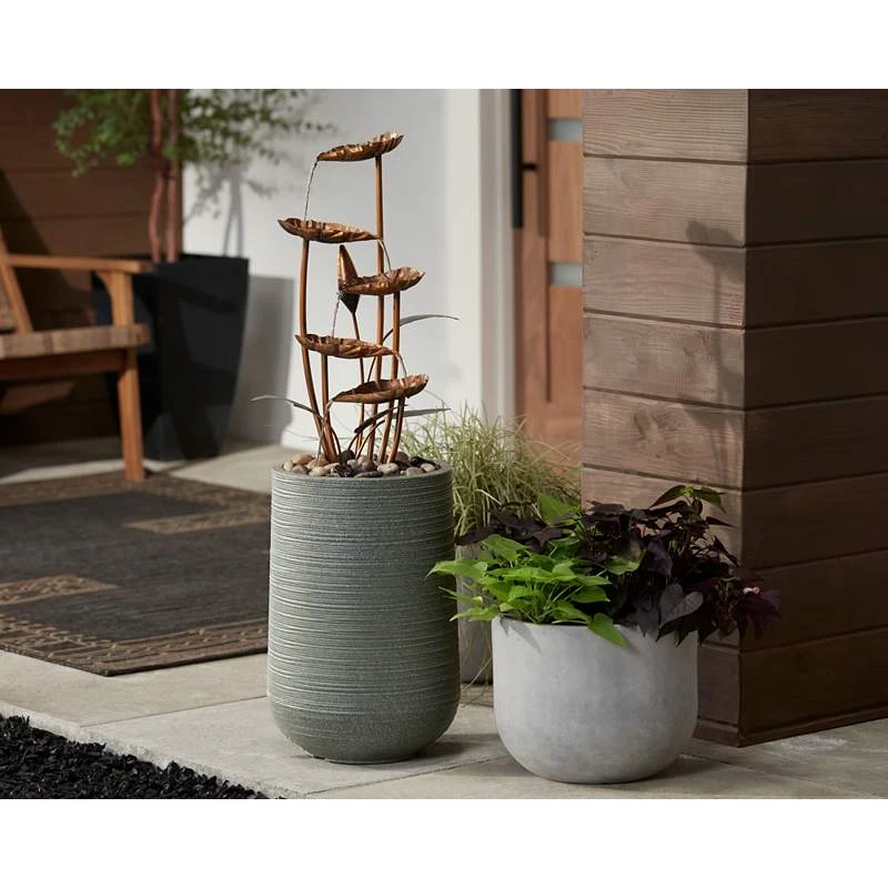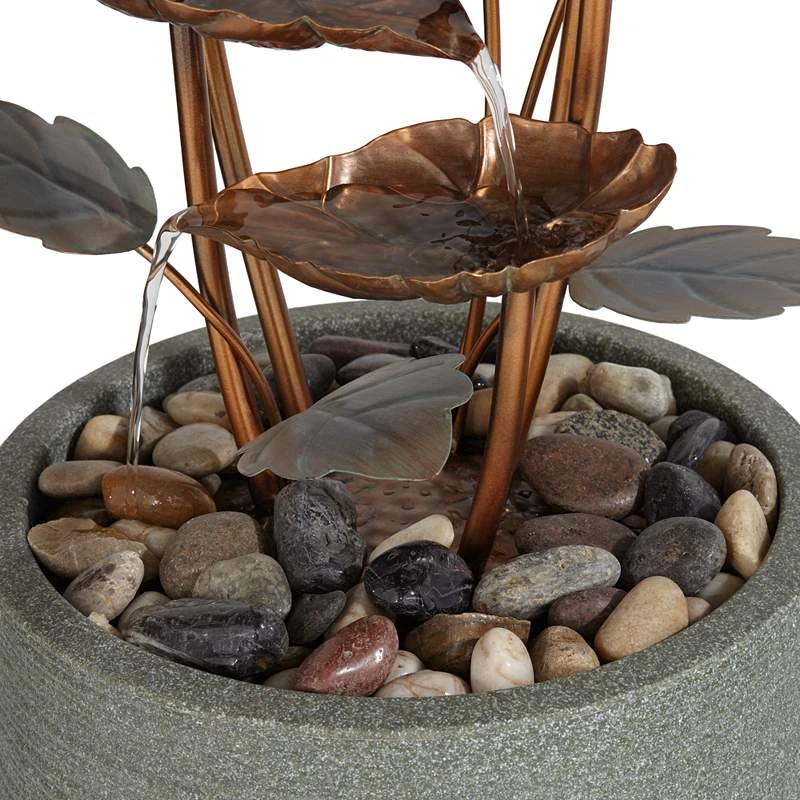 Leonisis 38 1/2″ Gray Stone And Metal Leaf Outdoor Plug-In Fountain