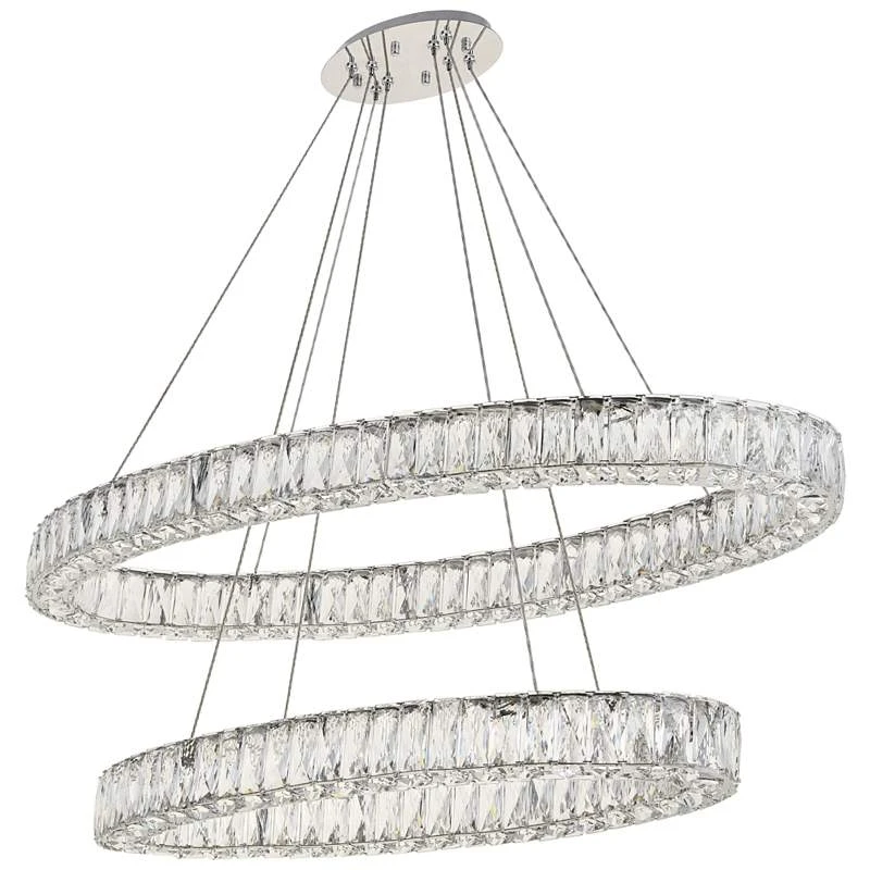 Monroe 41″ Wide Chrome And Crystal 2-Tier LED Ring Chandelier