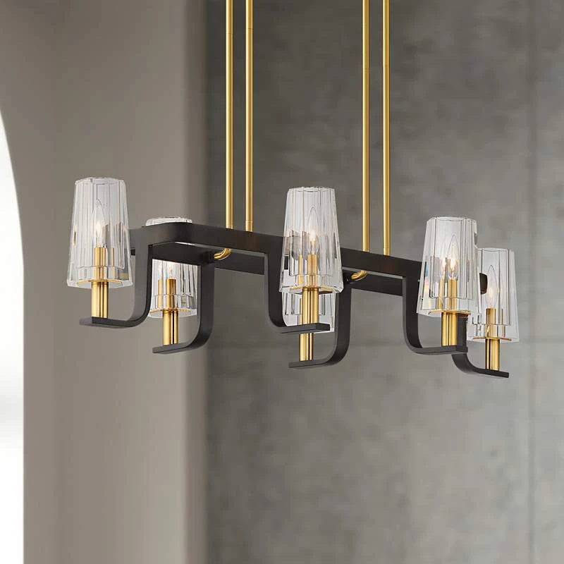 Possini Bronxville 38″ Black And Brass Modern 6-Light Island Pendant