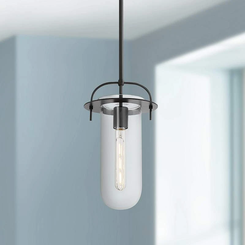Possini Euro Savona 8″ Wide Black Tube Mini Pendant