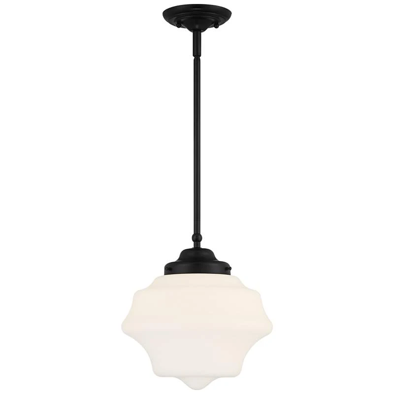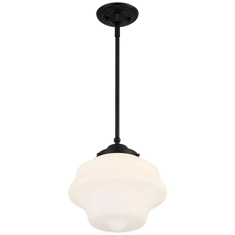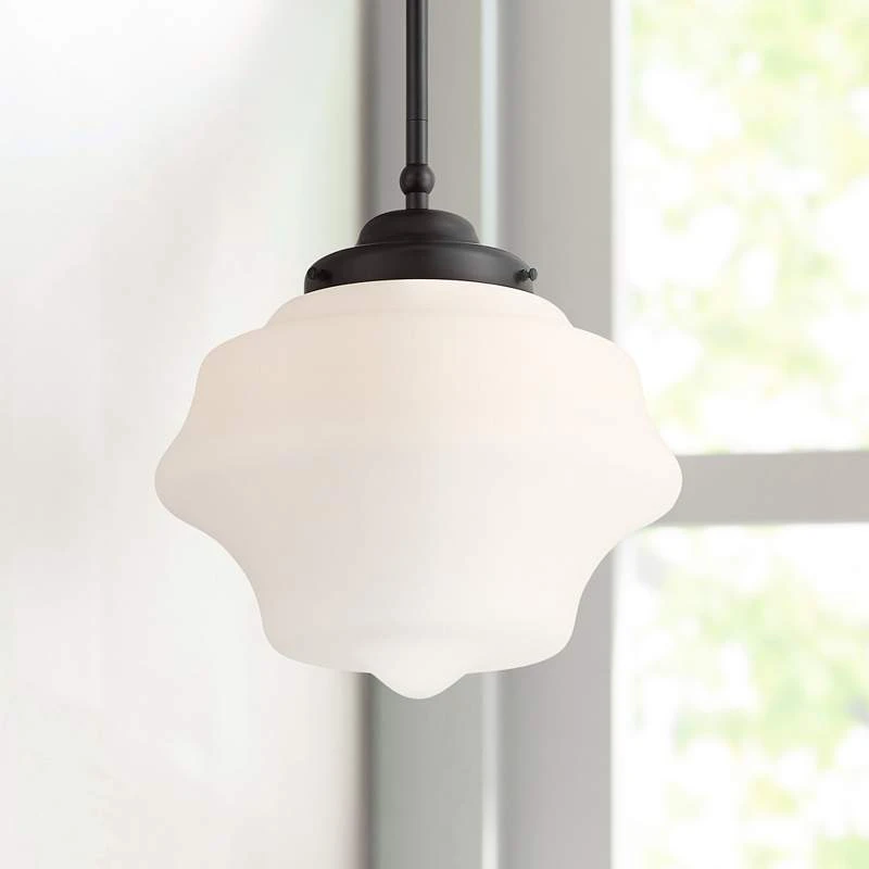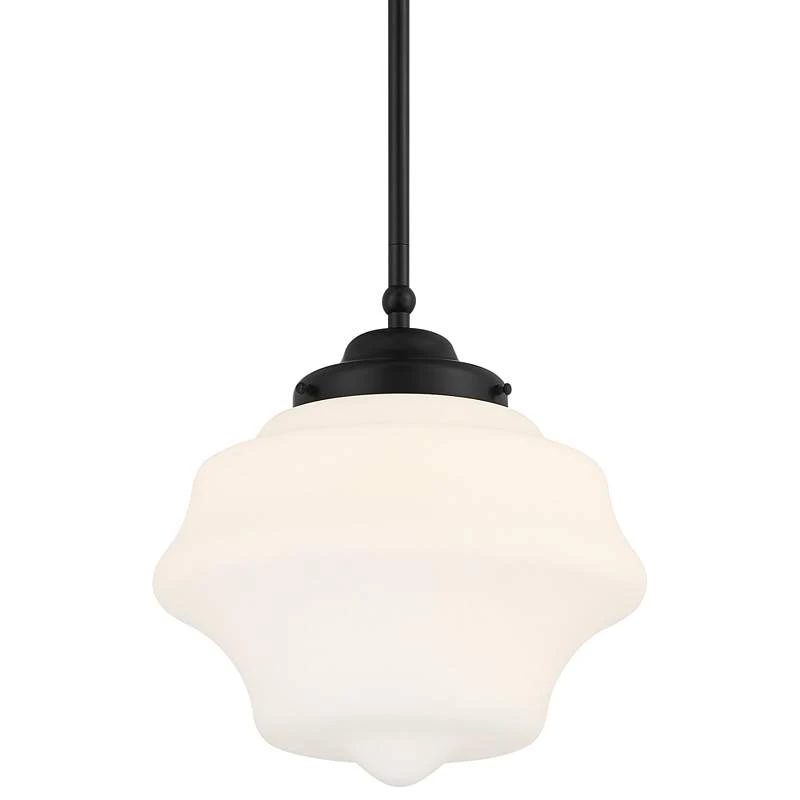 Possini Euro Tyce 11″ Wide Black And Opal Schoolhouse Pendant Light