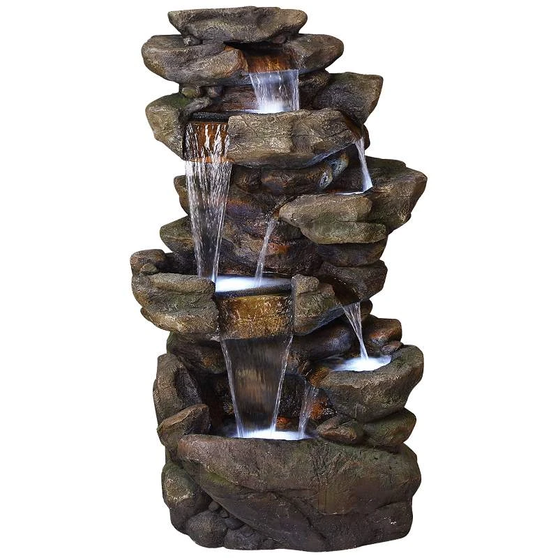 Rainforest Rock Waterfall 51″H 6-Tier Outdoor LED Fountain
