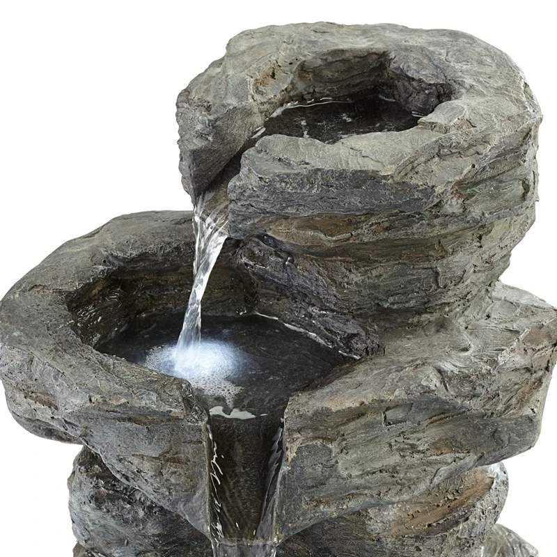 Rock Cascade 22″ Gray Stone Outdoor Fountain With LED Light