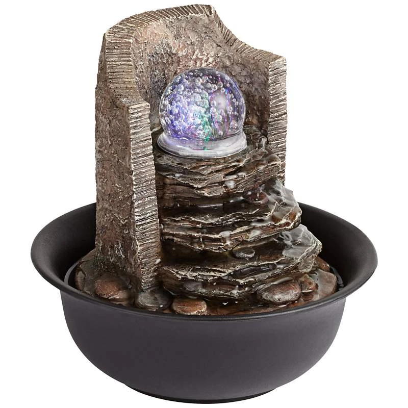 Rock Stack And Ball 10 1/4″ High Tabletop Fountain