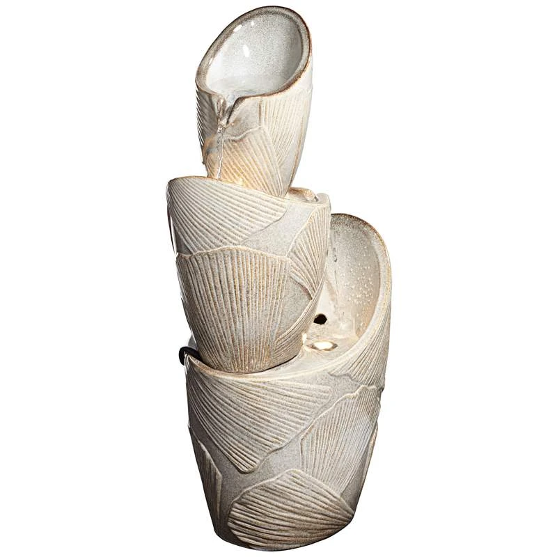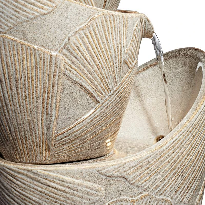Three Urn With Leaves 30″ High LED Cascading Floor Fountain
