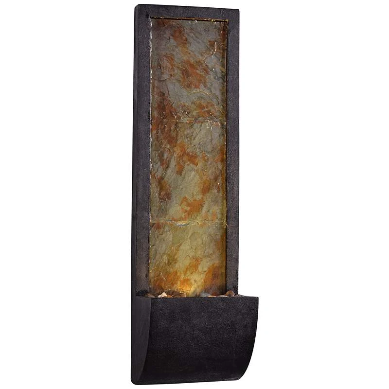 Triptych 37″ Natural Slate Modern Wall Fountain With Light