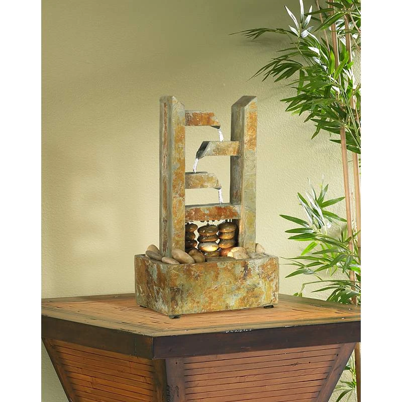 Zigzag Zen 17 1/4″ High Lighted Natural Slate Table Fountain